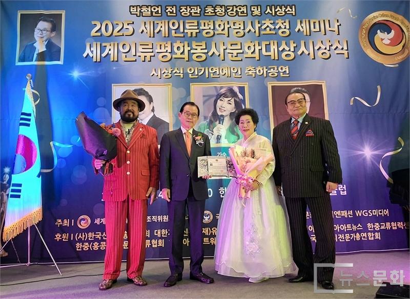 세계인류평화봉사상조직위원회(공동위원장 우덕수·김태후)가 주최한 이번 행사는 사회 각 분야에서 나눔과 봉사를 실천하며 인류 평화와 문화 발전에 기여한 인물을 선정해 시상하는 자리다.