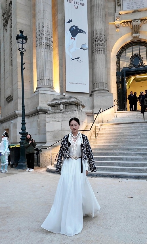 특히, 샤넬 컬렉션 현장에서는 실제 한복 저고리를 활용한 룩으로 현지 포토그래퍼들의 시선을 사로잡았다. 전통 한복 저고리에 화이트 스커트를 매치해 한국의 전통미와 파리의 클래식한 패션 무드를 자연스럽게 연결했다.