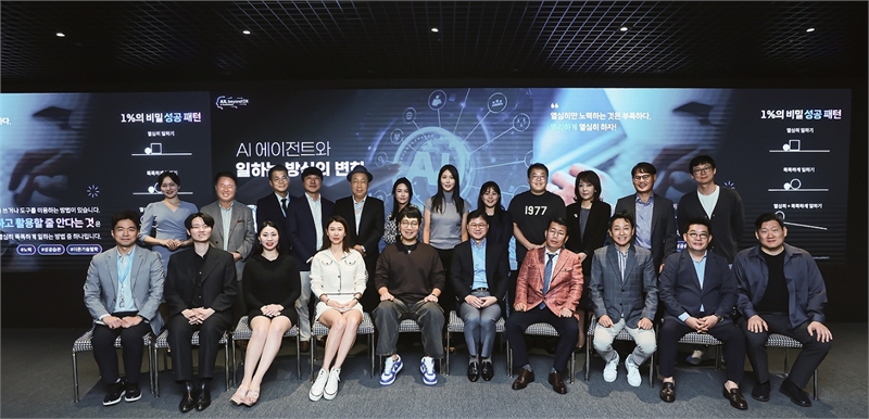 이사벨라가 KBS1TV 아침마당 주부스타탄생 준결승전에서 우승한 출연자들과 진행자와 함께 포즈를 취하고 있다